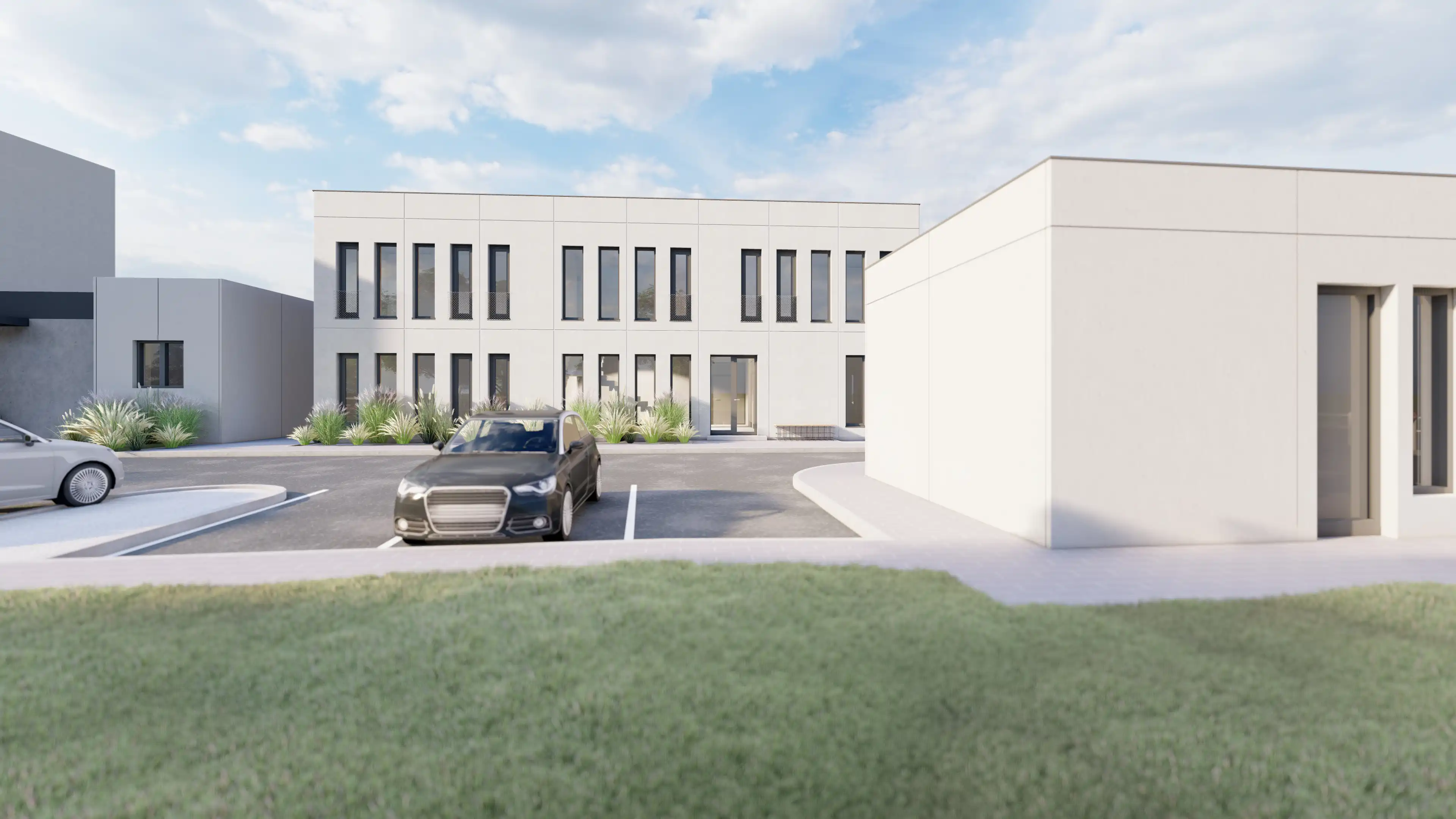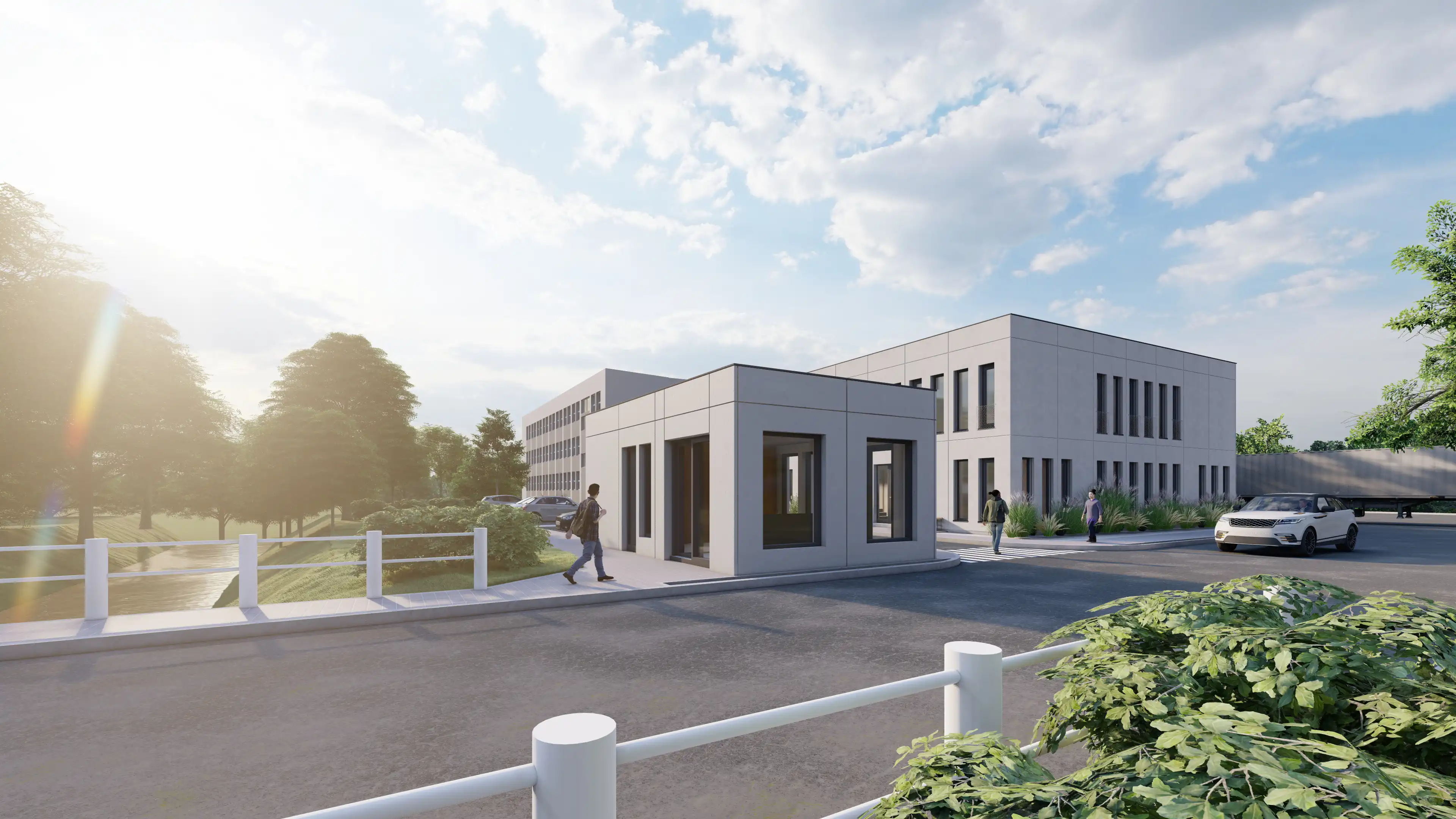 v zastavěném území stávajícího výrobního areálu v obci Tovačov. Svou polohou nahradila již zdemolovaný objekt jídelny, který nevyhovoval dnešním standardům užívání.Objekt je dvoupodlažní s téměř čtvercovým půdorysem. V návrhu bylo cílem uplatnit vlastní stěnový prefabrikovaný systém, který firma vyvinula. Těžce působící betonový povrch hlavní nosné konstrukce budovy v kombinaci s četným zasklením vytváří na fasádě harmonický kontrast.Kromě nosných obvodových stěn byly uvnitř dispozice navrženy dvě nosné prefabrikované stěny, které ohraničují technické zázemí. Ty spolu s vodorovnými prvky nesou celou budovu. Zbytek budovy je vystavěn z lehkých sádrokartonových příček, které umožňují libovolně měnit dispozici.