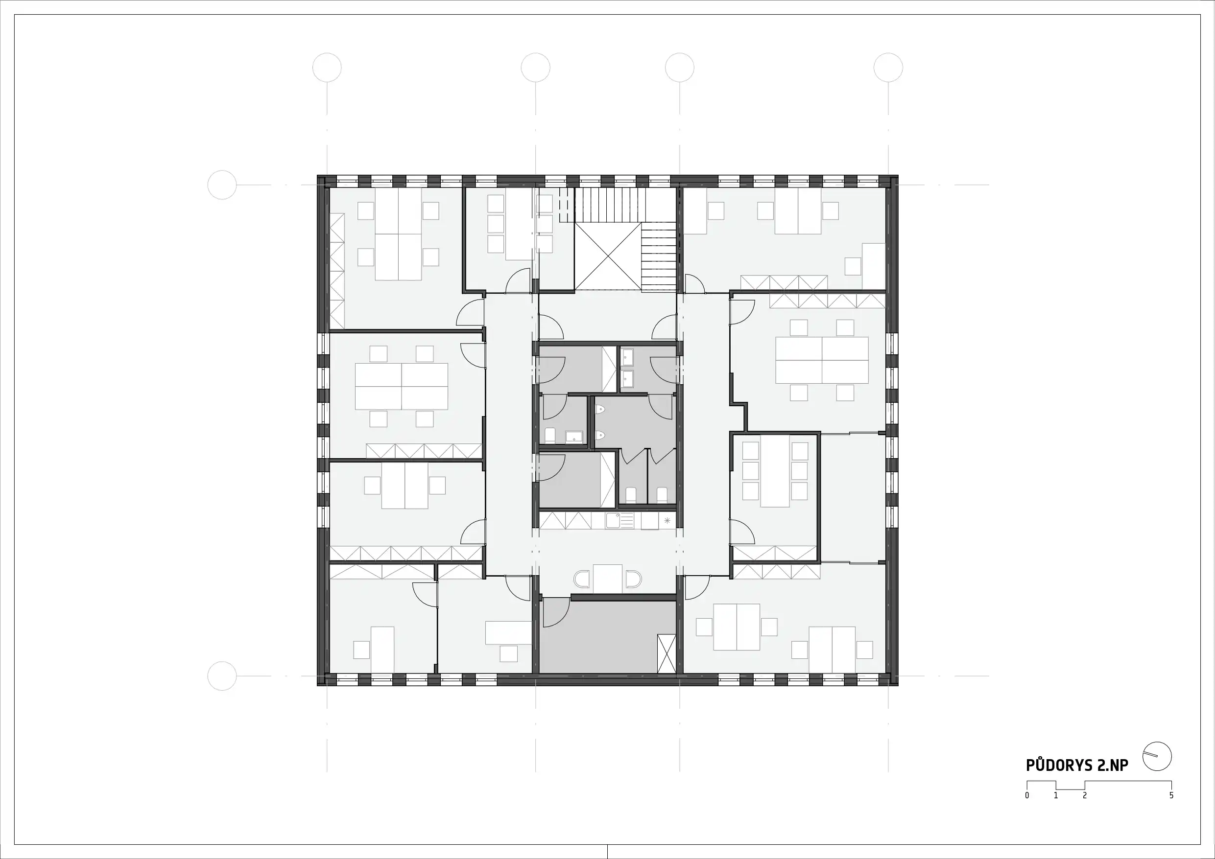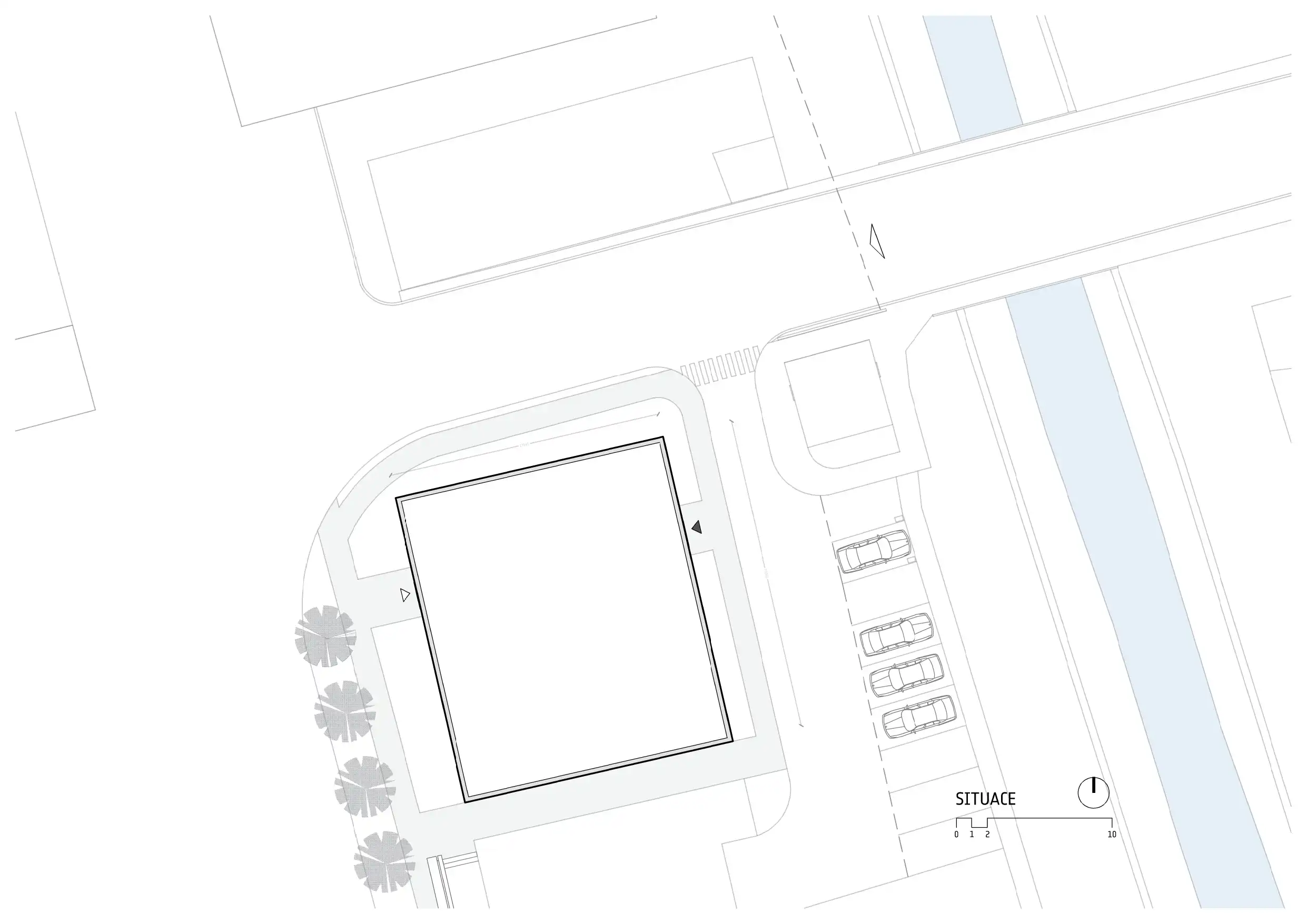 Administrativní budova coby 'pracovní místo' pro 40 osob byla navržená jako jeden kompaktní kvádr