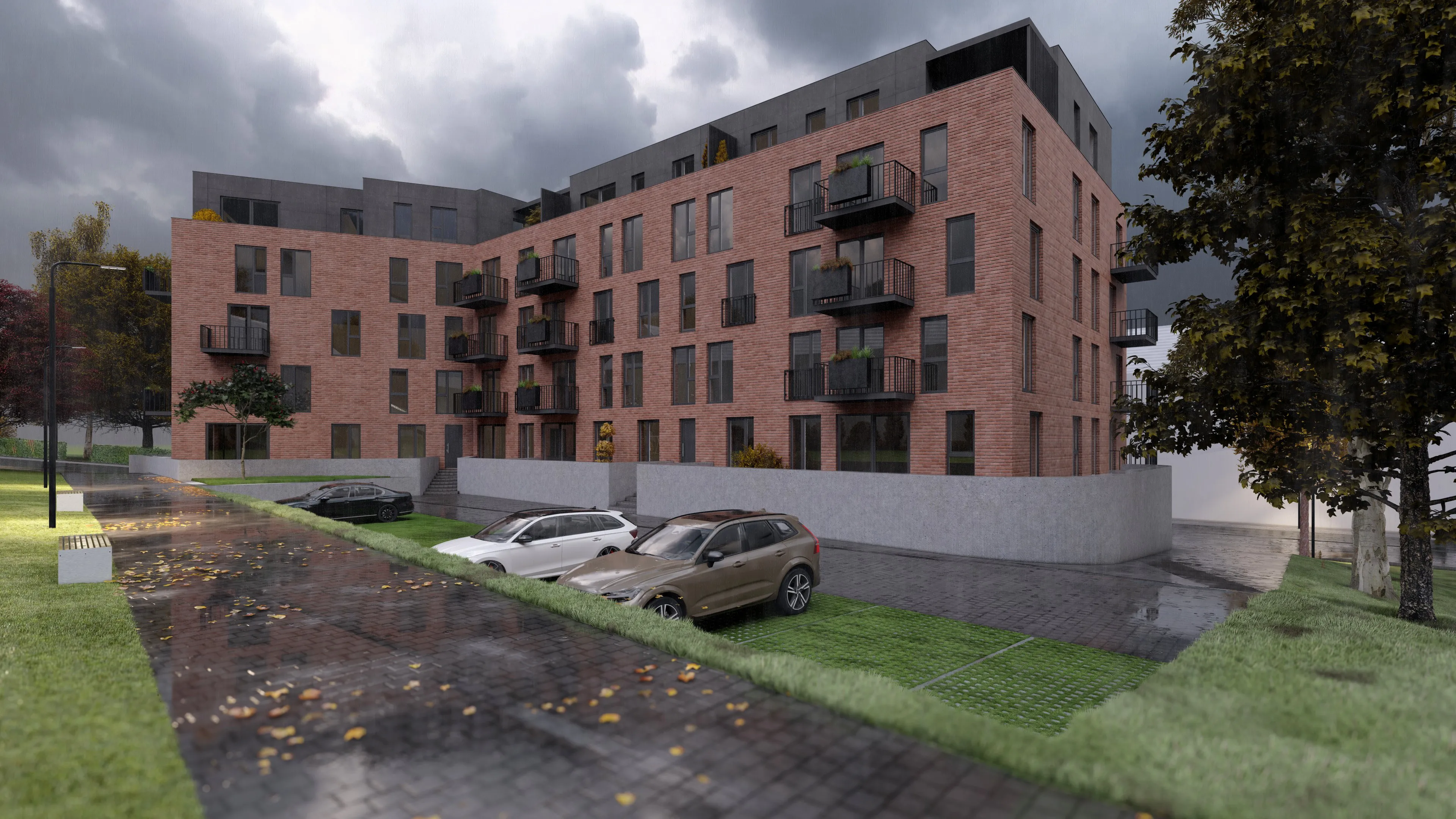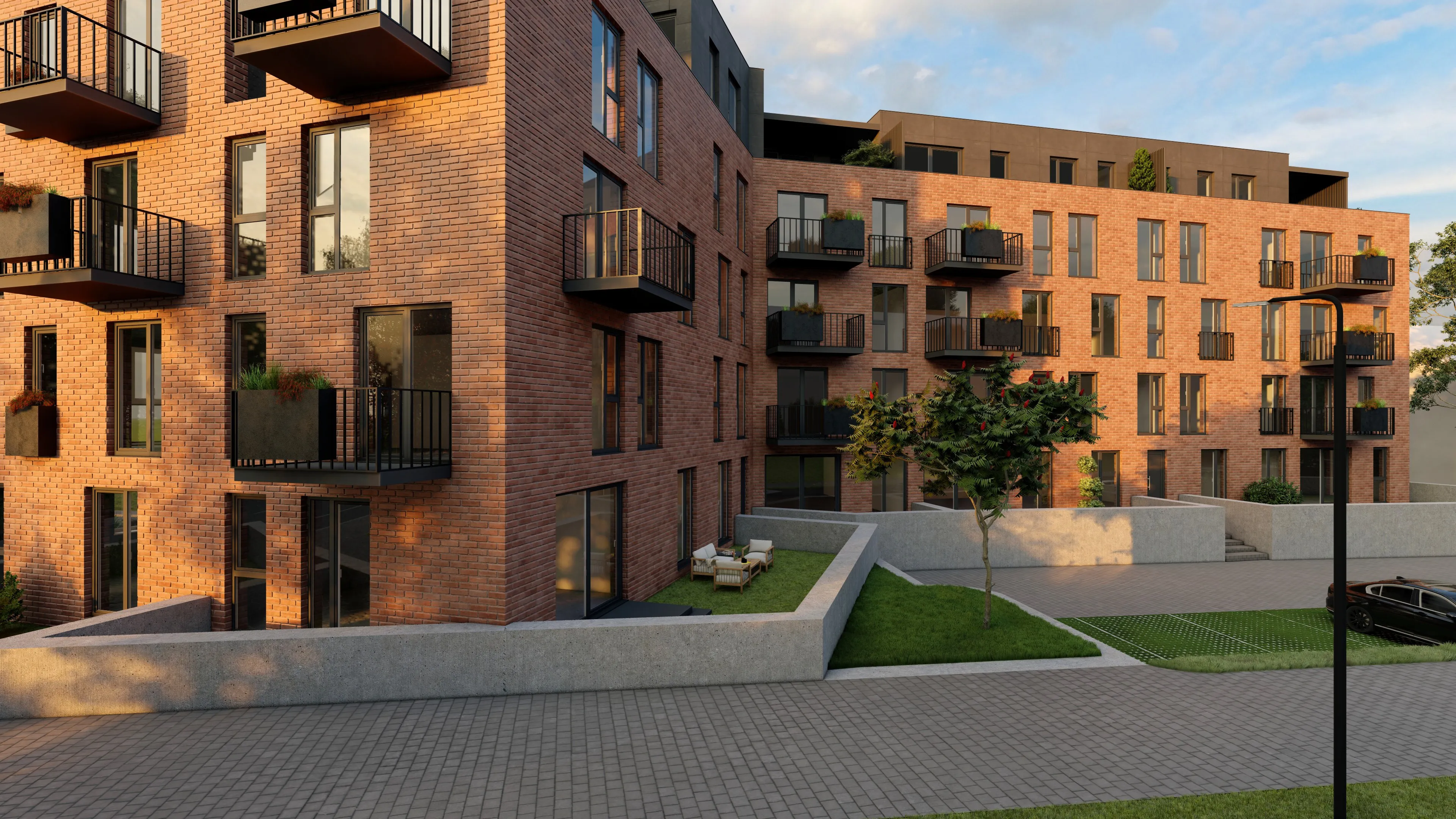 Představujeme náš nový referenční projekt v Chebu, který přináší svěží vítr do místní zástavby. Tento moderní bytový dům na první pohled zaujme svou výraznou fasádou z režného zdiva. Použití červených cihel v kombinaci s černými kovovými prvky balkonů a velkoformátovými okny dodává budově nezaměnitelný charakter inspirovaný anglickou či industriální architekturou. Nejde však jen o vnější vzhled. Projekt byl navržen s důrazem na kvalitu veřejného prostoru. Okolí domu doplňuje pečlivě řešená parková úprava a dostatek zeleně, která přirozeně propojuje budovu s okolím a poskytuje rezidentům příjemné místo k odpočinku. Interiéry bytů korespondují s vnějším vzhledem domu. Vsadili jsme na vzdušnost, světlo a poctivé materiály. Otevřené dispozice, dřevěné podlahy ve vzoru rybí kosti a pohledové betony či stěrky vytvářejí moderní, čistý, a přitom útulný domov pro náročné klienty.